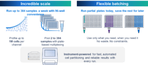 – Fix and process samples individually (singleplex workflow) or pooled with up to 384 samples in a single lane of a Chromium chip (plate-based multiplex workflow)